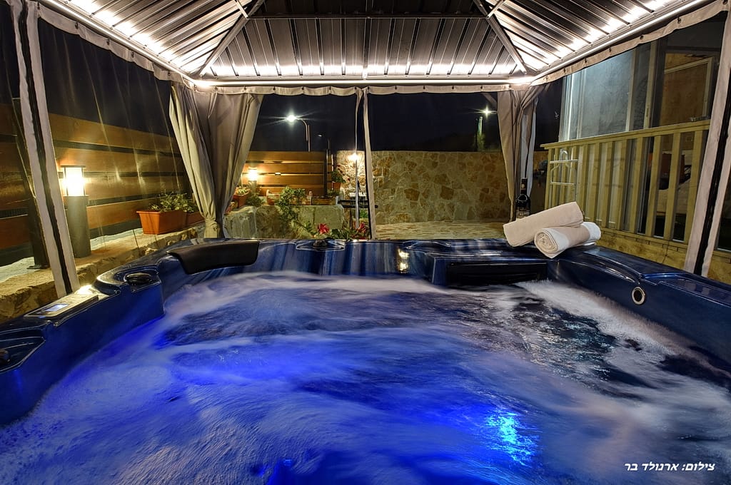 ג`קוזי ספא זרמים מפנק ומקורה ,מנגל ,תאורה רומנטית לשעות הערב ,חנייה פרטית ,גינת צמחי תבלין ,פינות ישיבה מול הנוף , פינת משחקים, סאונה יבשה